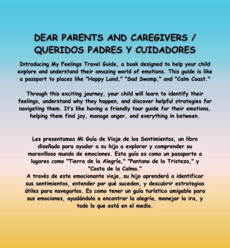 A bilingual travel guide for children to understand their feelings through fun adventures.